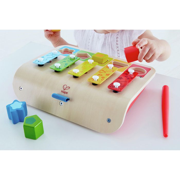 Je li to klavir? Slagalica? Ili ksilofon? Zapravo, ova glazbena igračka je sve troje, u jednom jednostavnom i šarenom dizajnu. Koristite je kao glazbenu igračku ili kao slagalicu za djecu kako biste ih naučili o oblicima, bojama i zvukovima, a sve to uz potpunu zabavu.