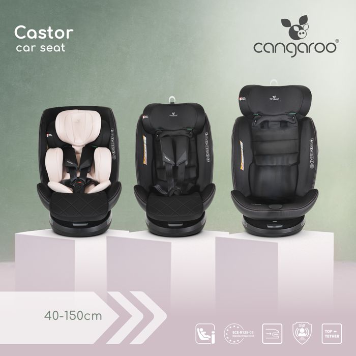 Cangaroo Castor i-Size dizajniran je kako bi pružio maksimalnu sigurnost i udobnost vašem djetetu – od rođenja do otprilike 12 godina (40–150 cm). Pouzdan mehanizam rotacije od 360°, izvrsna zaštita od bočnog udara i ergonomski dizajn čine ga savršenim suputnikom za svako obiteljsko putovanje.