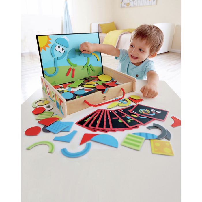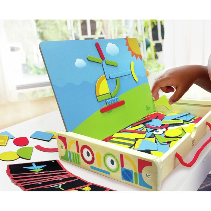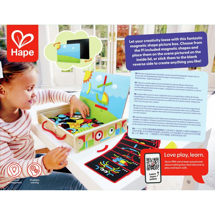 Kutija kreativnosti s 91 magnetskim oblikom i beskrajnim mogućnostima dizajna. Pustite svoju kreativnost na volju s ovom fantastičnom magnetskom kutijom za slike. Odaberite jedan od 91 priloženih magnetskih oblika i postavite ih na prizor prikazan na unutarnjoj strani poklopca ili ih zalijepite na praznu poleđinu kako biste stvorili što god želite!