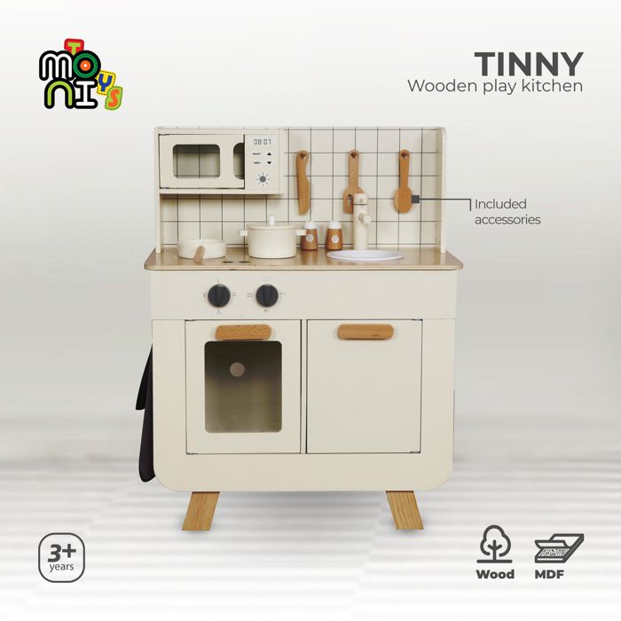 Drvena kuhinja Tinny tvrtke Moni Toys savršen je izbor za male kuhare koji vole stvarati, istraživati i zabavljati se u vlastitom kulinarskom svijetu! Pažljivo izrađena s pažnjom posvećenom detaljima, ima realističan dizajn i nudi beskrajne mogućnosti za maštovitu igru.